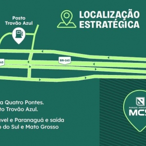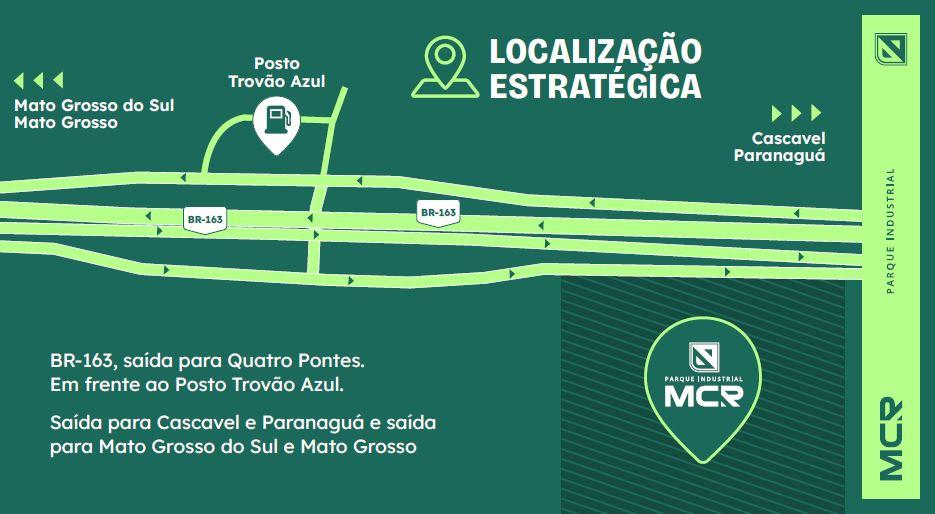 Um parque industrial com infraestrutura completa, além da localização estratégica na BR-163, em frente ao Posto Trovão Azul em Marechal Cândido Rondon.